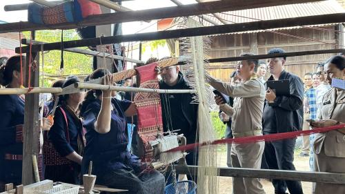 ทอดพระเนตรนิทรรศการภูมิปัญญาผ้าไทย ณ บ้านโพน อำเภอคำม่วง